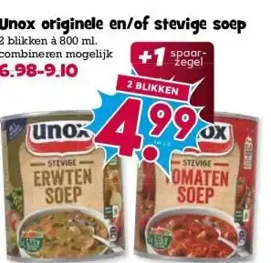 Nu in de aanbieding bij Boon`s Markt: Unox originele en/of stevige soep✅ Actie geldig van 5-01 t/m 11-01.