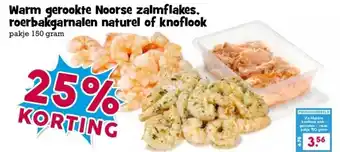 Warm gerookte Noorse zalmflakes. roerbakgarnalen naturel of knoflook aanbieding bij Boon`s Markt – binnenkort verwacht