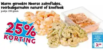 Warm gerookte Noorse zalmflakes. roerbakgarnalen naturel of knoflook aanbieding bij Boon`s Markt