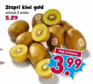 De Zespri kiwi gold is momenteel met korting verkrijgbaar bij Boon`s Markt. Hier vind je alle details over prijs, geldigheidsduur en actievoorwaarden. Vergeet niet om ook andere aanbiedingen en deals voor Zespri kiwi gold te bekijken zodat je zeker weet dat je de beste prijs betaalt. De kortingsactie loopt van 16-02-2026 tot 22-02-2026. Is de actie inmiddels verlopen? Geen zorgen, vergelijk dan soortgelijke aanbiedingen of volg de productcategorie voor toekomstige prijsverlagingen. Zo koop je altijd met voordeel.Veelgestelde vragen over Zespri kiwi gold