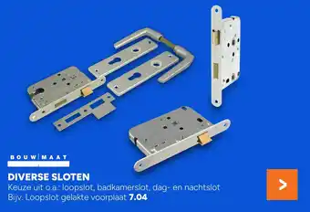 De prijs van de Diverse sloten kan ook teruggevonden worden hierboven op de pagina, samen met de datum van wanneer de aanbieding beschikbaar is. Ook kun je de prijzen in de huidige BOUWMAAT folder of op de BOUWMAAT website controleren. De aanbiedingen verzekeren je van het kopen van de BOUWMAAT producten voor de laagste prijs.