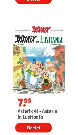 De prijs van de Asterix 41 - Asterix in Lusitania kan ook teruggevonden worden hierboven op de pagina, samen met de datum van wanneer de aanbieding beschikbaar is. Ook kun je de prijzen in de huidige Bruna folder of op de Bruna website controleren. De aanbiedingen verzekeren je van het kopen van de Bruna producten voor de laagste prijs.