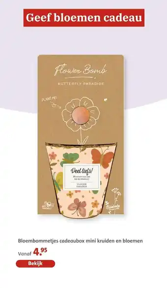Koop Bloembommetjes cadeaubox mini kruiden en bloemen komende week met korting