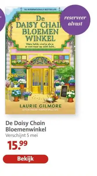 De prijs van de De Daisy Chain Bloemenwinkel kan ook teruggevonden worden hierboven op de pagina, samen met de datum van wanneer de aanbieding beschikbaar is. Ook kun je de prijzen in de huidige Bruna folder of op de Bruna website controleren. De aanbiedingen verzekeren je van het kopen van de Bruna producten voor de laagste prijs.