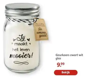 Geurkaars zwart wit glas aanbieding bij Bruna