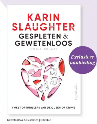 Exclusieve aanbieding van HarperCollins: de omnibus 'Gewetenloos & Gespleten' met twee topthrillers van de Queen of Crime, Karin Slaughter. Deze literaire thrillers nemen je mee in de duistere wereld van gewetenloze misdadigers en gespleten persoonlijkheden. Laat je meeslepen door de bloedstollende verhalen en geniet van de spanning en sensatie die deze boeken te bieden hebben. Met deze omnibus haal je in één klap twee van de beste boeken van Karin Slaughter in huis. Mis deze kans niet om je thrillercollectie uit te breiden met deze must-reads. Bestel nu de 'Gewetenloos & Gespleten' omnibus en dompel jezelf onder in de wereld van misdaad en mysterie.