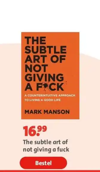 Deze The subtle art of not giving a fuck is nu in de aanbieding bij Bruna. Bekijk ook andere lopende acties en bespaar met scherpe prijzen of online deals. Bestel The subtle art of not giving a fuck via Bruna website of koop het product met korting in een winkel bij jou in de buurt. Op Folderz.nl verzamelen we dagelijks de beste The subtle art of not giving a fuck aanbiedingen. Klik op het belletje om een gratis melding te ontvangen zodra er weer een nieuwe actie of prijsverlaging voor The subtle art of not giving a fuck beschikbaar is.Veelgestelde vragen over The subtle art of not giving a fuck
