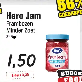 Hero Jam Frambozen minder zoet aanbieding bij Budget Food – binnenkort verwacht