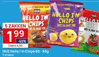 QUE Hello I'm Chips 60 - 65g aanbieding bij Butlon – binnenkort verwacht