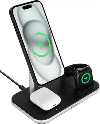 Actuele BlueBuilt 3-in-1 Draadloze Oplader met Qi2 15W Zwart aanbieding bij Coolblue van 26-12 t/m 1-01.