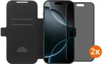 Actuele BlueBuilt Apple iPhone 17 Pro Max Book Case Leer Zwart + Privacy Screenprotector Duo Pack aanbieding bij Coolblue van 30-12 t/m 5-01.