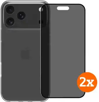 Actuele BlueBuilt Back Cover iPhone 17 Pro Max Transparant + Privacy Screenprotector Duo Pack aanbieding bij Coolblue van 30-12 t/m 5-01.