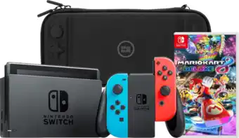 Vergelijk de actuele aanbiedingen hierboven om te zien of Nintendo Switch Rood/Blauw + Mario Kart 8 Deluxe + BlueBuilt Beschermhoes binnenkort opnieuw met korting wordt aangeboden. We houden alle prijzen en acties bij zodat je je boodschappenlijst slim kunt plannen. Door aanbiedingen te vergelijken zie je direct of het verstandig is om je aankoop even uit te stellen voor een betere prijs. Kom regelmatig terug om te ontdekken of er een nieuwe Nintendo Switch Rood/Blauw + Mario Kart 8 Deluxe + BlueBuilt Beschermhoes deal aankomt.Veelgestelde vragen over Nintendo Switch Rood/Blauw + Mario Kart 8 Deluxe + BlueBuilt Beschermhoes