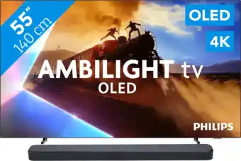 Nu in de aanbieding bij Coolblue: Philips Ambilight 55'' OLED760 4K (2025) + JBL Bar 300 M2 Zwart✅ Actie geldig van 8-07 t/m 27-01.
