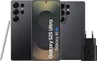 Actuele Samsung Galaxy S25 Ultra 1TB Zwart 5G + Accessoirepakket aanbieding bij Coolblue van 23-01 t/m 3-01.