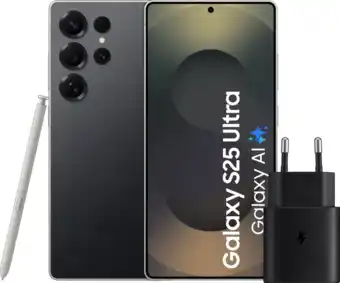 Actuele Samsung Galaxy S25 Ultra 256GB Zwart 5G + Samsung Oplader 25 Watt Zwart aanbieding bij Coolblue van 22-07 t/m 3-01.