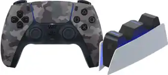 Actuele Sony PlayStation 5 DualSense Draadloze Controller Grey Camo + BlueBuilt Oplaadstation aanbieding bij Coolblue van 5-06 t/m 7-02.