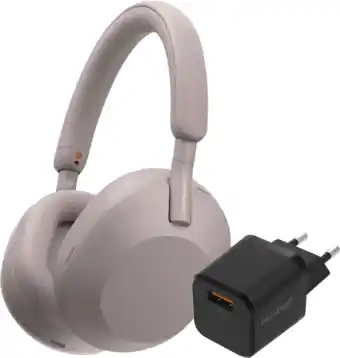 Actuele Sony WH-1000XM5 Roze + BlueBuilt Quick Charge Oplader met Usb A Poort 18W Zwart aanbieding bij Coolblue van 27-11 t/m 21-02.