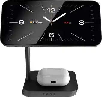ZENS 2-in-1 MagSafe en Qi2 Draadloze Oplader 15W met Standaard Zwart korting bij Coolblue