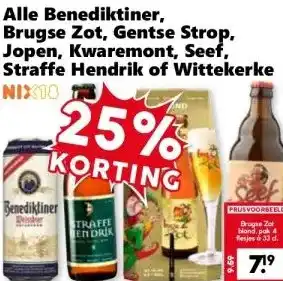 Deze Alle Benediktiner, Brugse Zot, Gentse Strop, Jopen, Kwaremont, Seef, Straffe Hendrik of Wittekerke is beschikbaar in onderstaande filialen op basis van jouw ingestelde locatie: