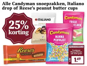 Alle Candyman snoepzakken, Italiano drop of Reese's peanut butter cups korting bij Coop