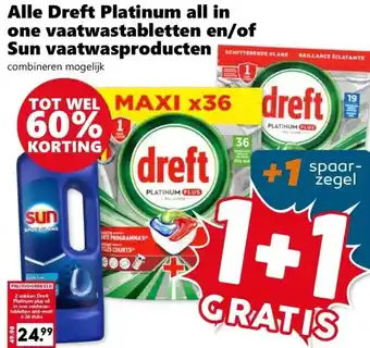 Alle Dreft Platinum all in one vaatwastabletten en/of Sun vaatwasproducten aanbieding bij Coop – binnenkort verwacht