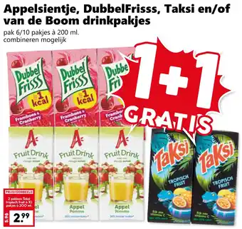 Appelsientje, DubbelFrisss, Taksi en/of van de Boom drinkpakjes 1+1 GRATIS