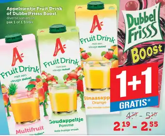 Appelsientje Fruit Drink of DubbelFrisss Boost 1+1 gratis