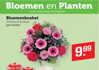 Haal nu een prachtig bloemenboeket in huis met ons wisselend aanbod van Bloemen en Planten. Vanaf woensdag zijn deze schitterende boeketten verkrijgbaar voor slechts 9.99 per boeket. Laat je verrassen door de kleurrijke combinaties en heerlijke geuren die deze bloemen met zich meebrengen. Perfect als cadeau voor een geliefde of gewoon om je eigen huis op te fleuren. Elk boeket is met zorg samengesteld en bevat een variatie aan verse bloemen en groene planten. Geniet van de prachtige bloemenpracht en breng de natuur in huis met onze Bloemenboeketten. Kom langs vanaf woensdag en kies jouw favoriete boeket uit ons ruime assortiment. Mis het niet!