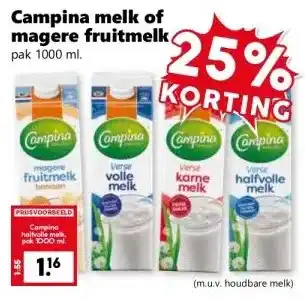 Koop Campina melk of magere fruitmelk, komende week met korting