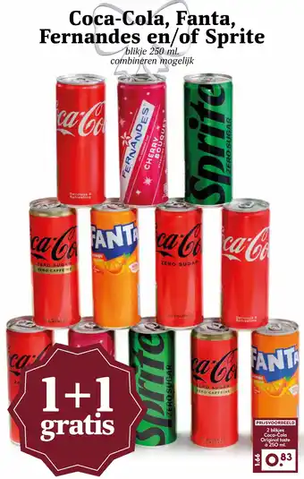 Coca-Cola, Fanta, Fernandes en/of Sprite 1+1 gratis