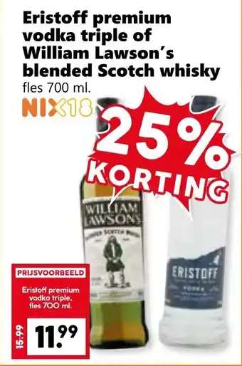 Eristoff premium vodka triple of William Lawson's blended Scotch whisky aanbieding en online acties bij Coop