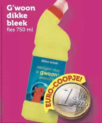 Coop biedt naast de G'woon dikke bleek een ruime collectie producten aan. Houd de wekelijkse Coop folder in de gaten om de beste aanbiedingen en acties te vinden. Naast G'woon dikke bleek, kunt u ook de volgende aanbiedingen vinden: G'woon Dikke Bleek Original 750ml 2x, Glorix Dikke Bleek Eucalyptus & Glorix Dikke Bleek Original 750 ml.