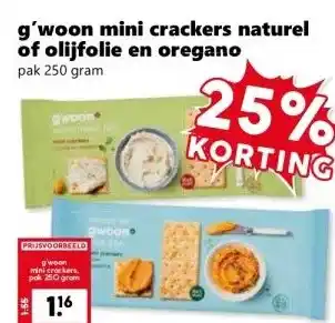 g'woon mini crackers naturel of olijfolie en oregano aanbieding bij Coop