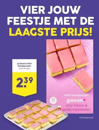 Neem een kijkje voor de goedkoopste producten tussen alle aanbiedingen! Als je wilt weten of Coop de hoogste korting voor g'woon mini tompoucen heeft, vergelijk het op de Topic page of met andere winkels.