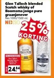 Koop Glen Talloch blended Scotch whisky of Boomsma jonge pure graanjenever komende week met korting
