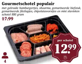 Coop biedt naast de Gourmetschotel populair een ruime collectie producten aan. Houd de wekelijkse Coop folder in de gaten om de beste aanbiedingen en acties te vinden. Naast Gourmetschotel populair, kunt u ook de volgende aanbiedingen vinden: Gourmetschotel Populair, Gourmetschotel populair & Gourmetschotel populair.