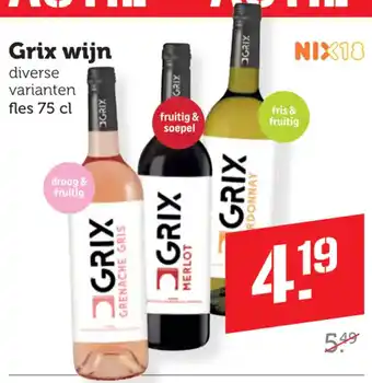 Coop biedt naast de Grix wijn een ruime collectie producten aan. Houd de wekelijkse Coop folder in de gaten om de beste aanbiedingen en acties te vinden. Naast Grix wijn, kunt u ook de volgende aanbiedingen vinden: Park Villa Wijn, I Heart Wijn & Park Villa Wijn.