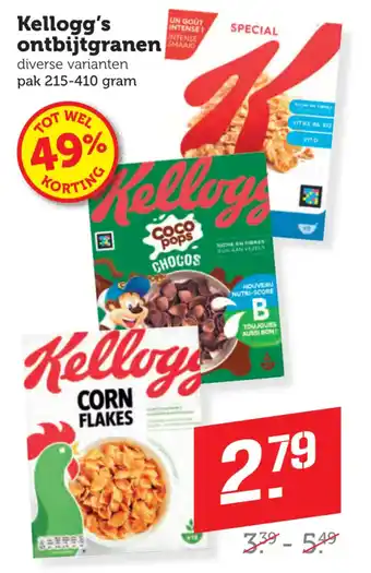 Geniet van de diverse varianten Kellogg's ontbijtgranen in een pak van 215-410 gram. Met tot wel 49% fortifying en een intense smaakervaring. Kies uit bekende favorieten zoals Coco Pops Chocos, Corn Flakes en meer. Met vitamine B6 en B12 voor een gezond ontbijt. De nieuwe Nutri-Score B geeft aan dat deze ontbijtgranen een gezonde keuze zijn. Kellogg's staat bekend om de kwaliteit en smaak van hun ontbijtproducten. Probeer nu de Special Kellogs met een intense smaakbeleving. Altijd even lekker en voedzaam, met Kellogg's ontbijtgranen start je de dag goed! Verkrijgbaar voor een voordelige prijs tussen 279 en 549.