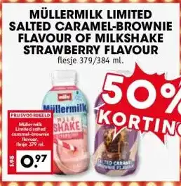 MÜLLERMILK LIMITED SALTED CARAMEL-BROWNIE FLAVOUR OF MILKSHAKE STRAWBERRY FLAVOUR aanbieding bij Coop – binnenkort verwacht