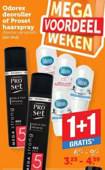 Odorex deoroller of Proset haarspray aanbieding bij Coop – binnenkort verwacht