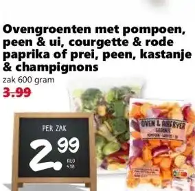 Ovengroenten met pompoen, peen & ui, courgette & rode paprika of prei, peen, kastanje & champignons aanbieding bij Coop – binnenkort verwacht