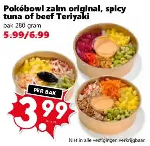 Pokébowl zalm original, spicy tuna of beef Teriyaki aanbieding en online acties bij Coop