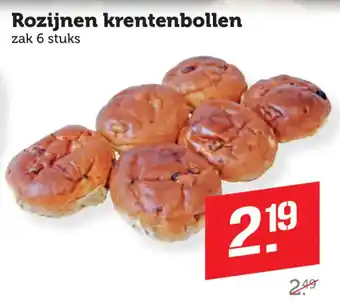 Rozijnen krentenbollen, zak 6 stuks, €2.49