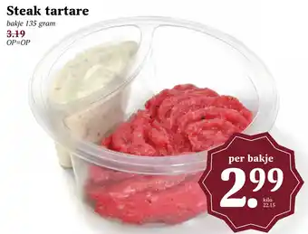 De aanbieding is verkrijgbaar in verschillende winkels, bekijk alle producten om de goedkoopste Steak tartare te krijgen. Als je graag wilt kijken of het artikel met meer korting te koop is in een andere winkel, bekijk de categorie 'Supermarkt'. Wellicht vind je deze aanbiedingen ook interessant: Steak tartare, Steak tartare & Steak tartare.