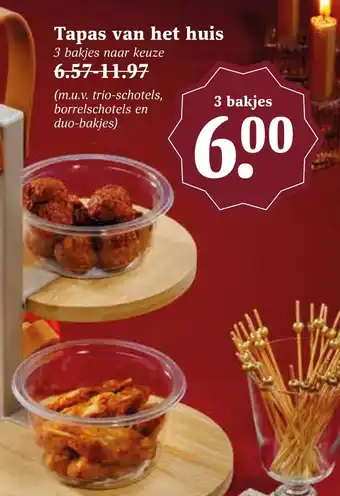 De aanbieding is verkrijgbaar in verschillende winkels, bekijk alle producten om de goedkoopste Tapas van het huis te krijgen. Als je graag wilt kijken of het artikel met meer korting te koop is in een andere winkel, bekijk de categorie 'Supermarkt'. Wellicht vind je deze aanbiedingen ook interessant: Tapas van het huis, Tapas van het huis & Tapas van het huis.