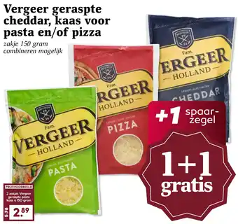 Vergeer geraspte cheddar, kaas voor pasta en/of pizza 1+1 gratis