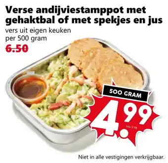 Verse andijviestamppot met gehaktbal of met spekjes en jus aanbieding bij Coop