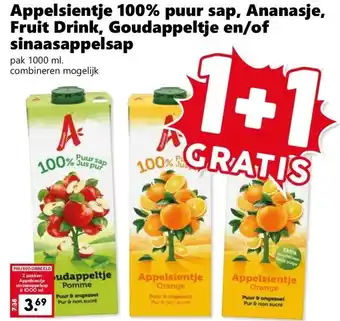 Appelsientje 100% puur sap, Ananasje, Fruit Drink, Goudappeltje en/of sinaasappelsap korting bij CoopCompact