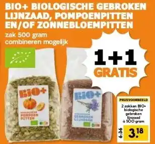 BIO+ BIOLOGISCHE GEBROKEN LIJNZAAD, POMPOENPITTEN EN/OF ZONNEBLOEMPITTEN korting bij CoopCompact